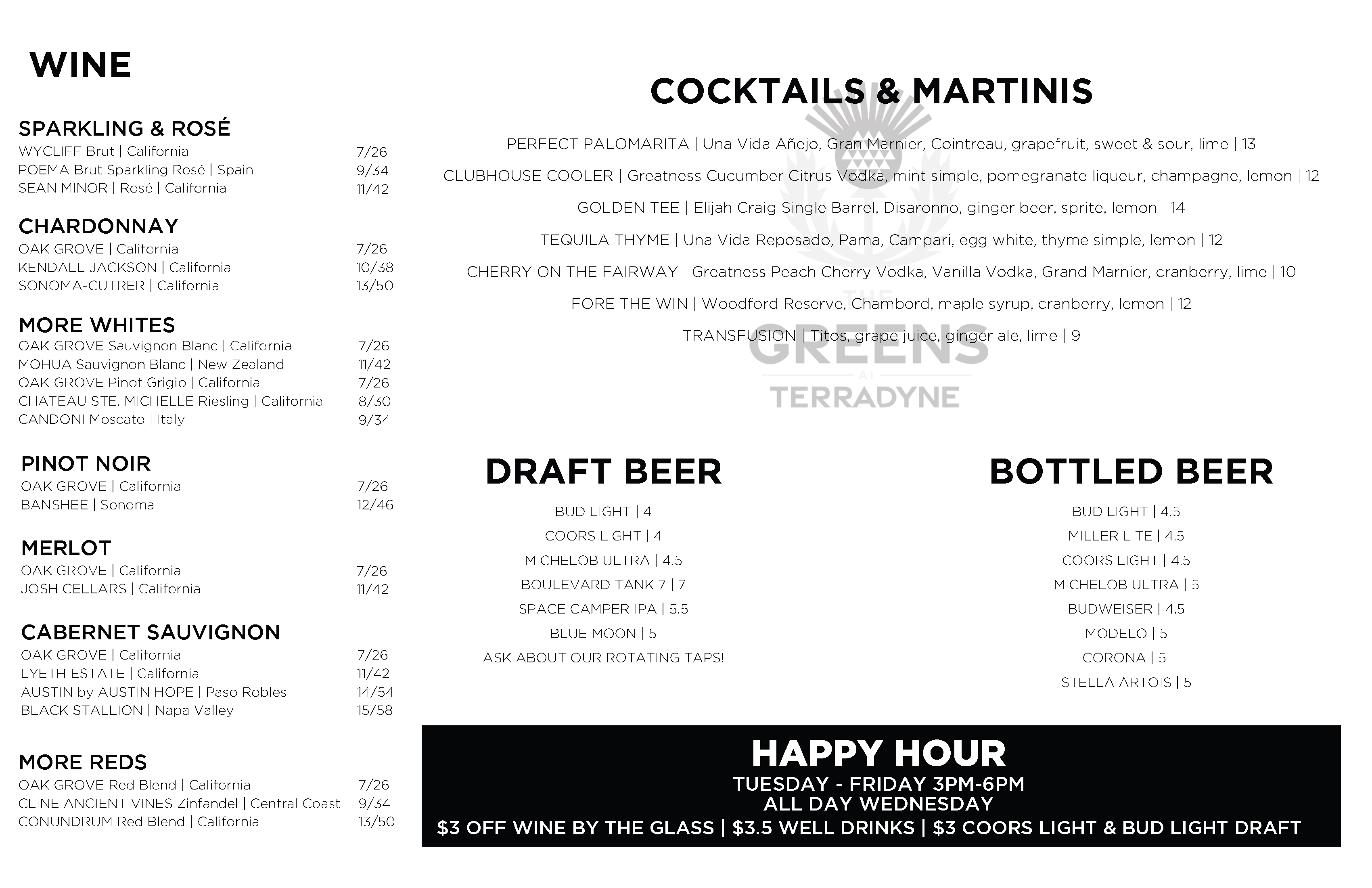 Menus Food Menu Drink Menu Open to the public inside the Terradyne Country Club Instagram Facebook Mail Like this:Like Loading...
